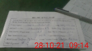 | Monitoring Date: 28-10-2021 | Start Time: 28-10-2021 08:50 AM | End Time: 28-10-2021 09:16 AM | Name of MEA: Za**** Iq**** BN**** | |