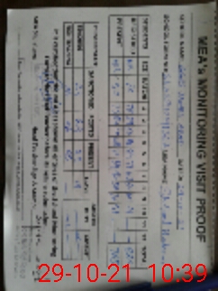 | Monitoring Date: 29-10-2021 | Start Time: 29-10-2021 09:37 AM | End Time: 29-10-2021 10:45 AM | Name of MEA: Sh**** Na**** | |