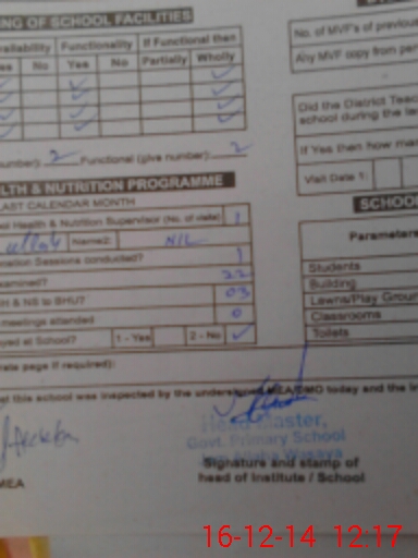 | Certified that this School was Inspected by the Undersigned MEA/DMO Today and the Information Stated Above is as Per Record. | |||||