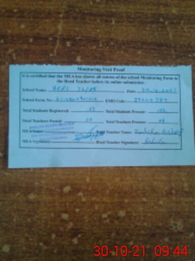 | Certified that this School was Inspected by the Undersigned MEA/DMO Today and the Information Stated Above is as Per Record. | |||||