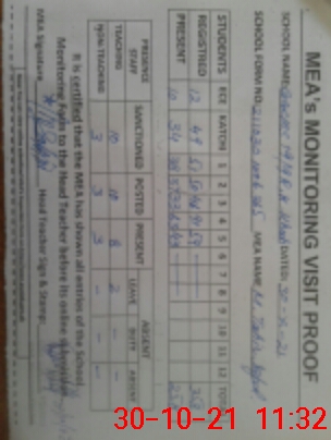 | Attendance Register | Head Teacher | MEA with School | Visit Proof |