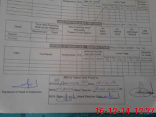 | Certified that this School was Inspected by the Undersigned MEA/DMO Today and the Information Stated Above is as Per Record. | |||||