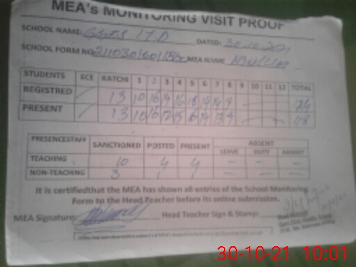 | Attendance Register | Head Teacher | MEA with School | Visit Proof |
