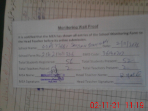 | EMIS Code: 36140207 | Name of School: GGPS TIBBI SAIDAN SHAH WALI | |||