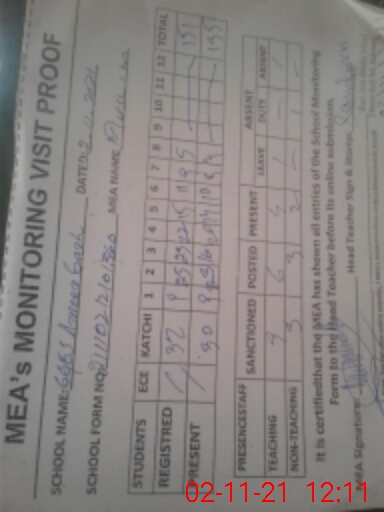| Attendance Register | Head Teacher | MEA with School | Visit Proof |