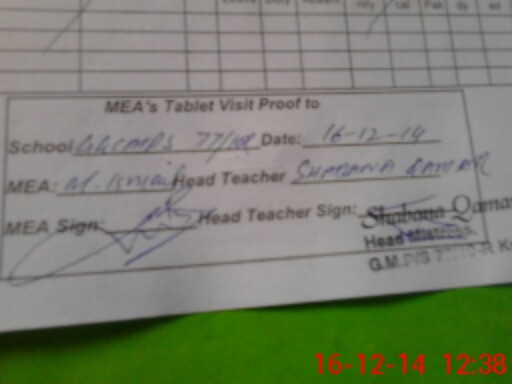 | Attendance Register | Head Teacher | MEA with School | Visit Proof |