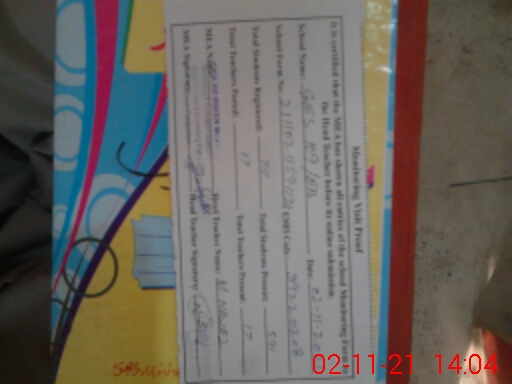 | Attendance Register | Head Teacher | MEA with School | Visit Proof |