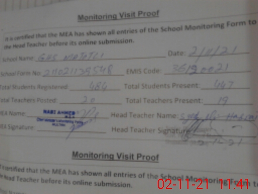 | Attendance Register | Head Teacher | MEA with School | Visit Proof |