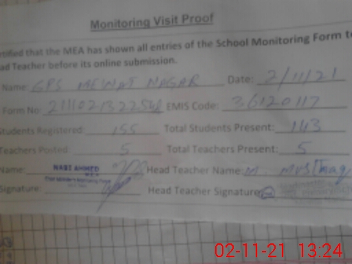 | EMIS Code: 36120117 | Name of School: GPS MEWAT NAGAR SHUJABAD | |||