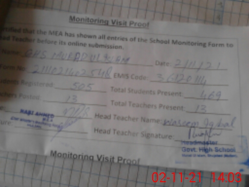 | EMIS Code: 36120114 | Name of School: GHS MURAD-UL-ISLAM SHUJABAD | |||