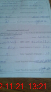 | Attendance Register | Head Teacher | MEA with School | Visit Proof |