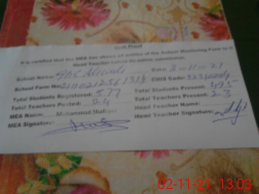 | EMIS Code: 32310004 | Name of School: GHS ALI WALI | |||