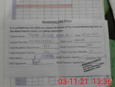 | Attendance Register | Head Teacher | MEA with School | Visit Proof |