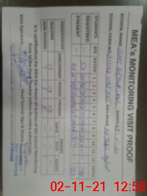 | Monitoring Date: 02-11-2021 | Start Time: 02-11-2021 11:42 AM | End Time: 02-11-2021 01:01 PM | Name of MEA: M.Ta**** Iq**** (S**** | |