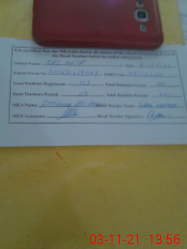 | Attendance Register | Head Teacher | MEA with School | Visit Proof |
