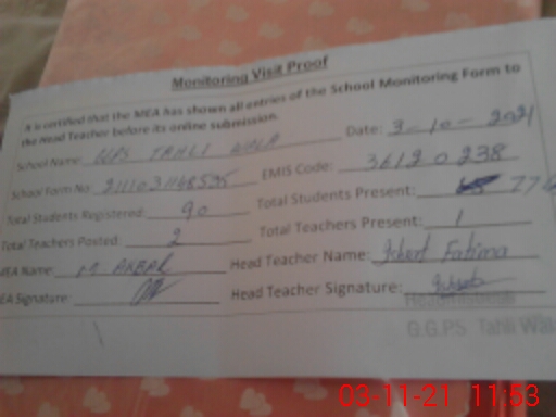 | EMIS Code: 36120238 | Name of School: GGPS TAHLI WALA SHUJABAD | |||
