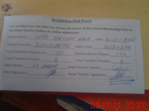 | EMIS Code: 36120239 | Name of School: GMPS DARKHAN WALA | |||