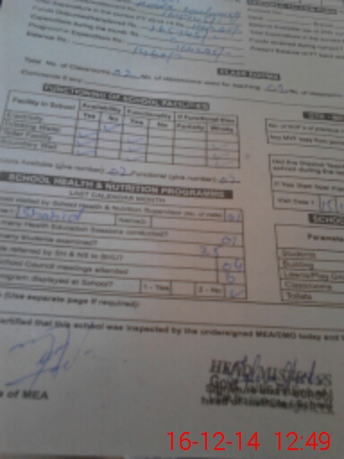 | Certified that this School was Inspected by the Undersigned MEA/DMO Today and the Information Stated Above is as Per Record. | |||||