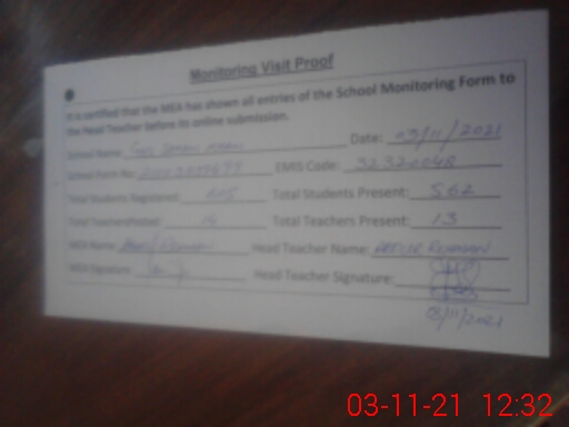 | Attendance Register | Head Teacher | MEA with School | Visit Proof |