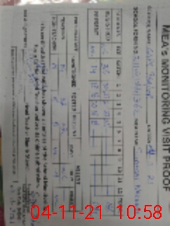 | Monitoring Date: 04-11-2021 | Start Time: 04-11-2021 10:13 AM | End Time: 04-11-2021 10:59 AM | Name of MEA: Sh**** Na**** | |