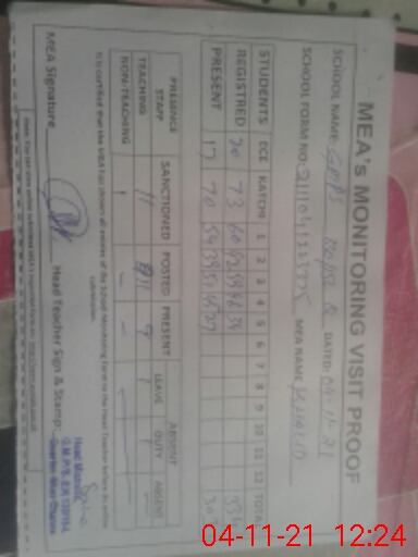 | Monitoring Date: 04-11-2021 | Start Time: 04-11-2021 10:39 AM | End Time: 04-11-2021 12:27 PM | Name of MEA: Kh**** Me**** | |
