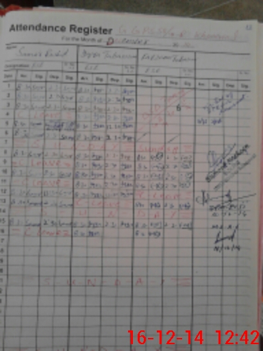 | CNIC | Full Name | Designation | R/C | Absence During Last Calender Month |