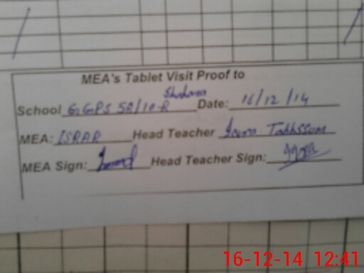| Attendance Register | Head Teacher | MEA with School | Visit Proof |