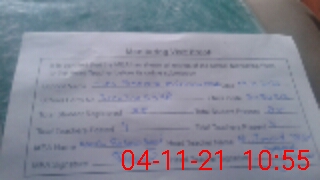 | Monitoring Date: 04-11-2021 | Start Time: 04-11-2021 10:22 AM | End Time: 04-11-2021 10:56 AM | Name of MEA: Ab**** Ra**** Am**** BN**** 28 | |