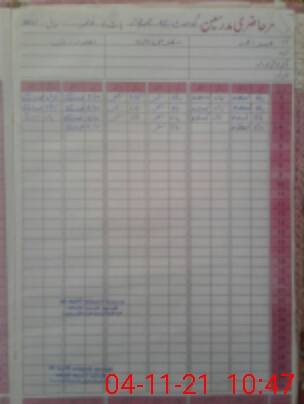 | CNIC | Full Name | Designation | R/C | Absence During Last Calender Month |