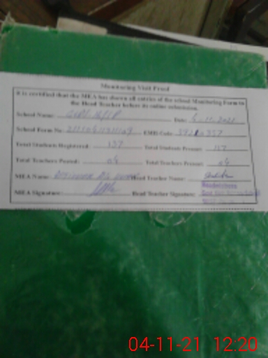 | Attendance Register | Head Teacher | MEA with School | Visit Proof |