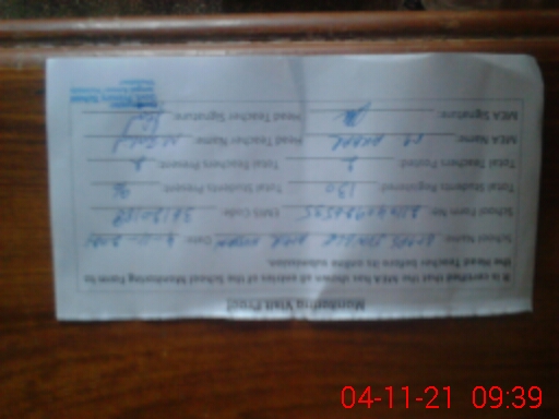 | Attendance Register | Head Teacher | MEA with School | Visit Proof |