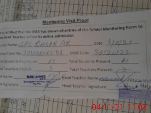 | EMIS Code: 36120122 | Name of School: GPS QAISAR PUR P/O MATOTLI SHUJABAD | |||
