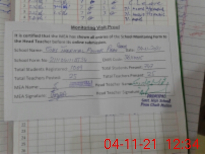 | Attendance Register | Head Teacher | MEA with School | Visit Proof |