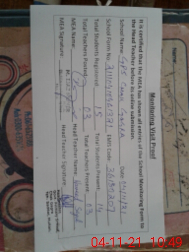 | Attendance Register | Head Teacher | MEA with School | Visit Proof |