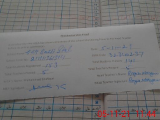 | Certified that this School was Inspected by the Undersigned MEA/DMO Today and the Information Stated Above is as Per Record. | |||||