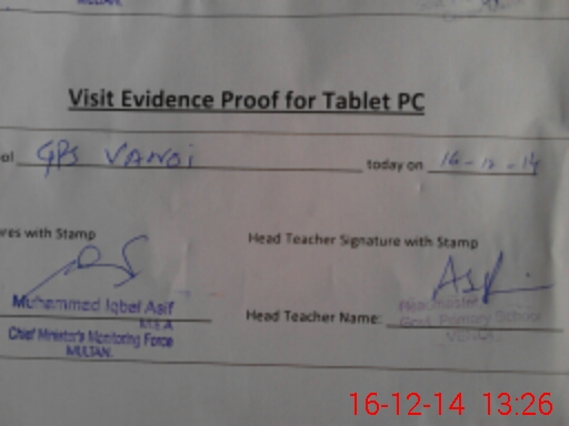 | Attendance Register | Head Teacher | MEA with School | Visit Proof |