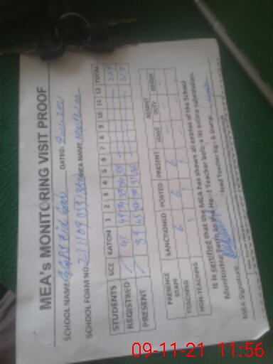 | Attendance Register | Head Teacher | MEA with School | Visit Proof |