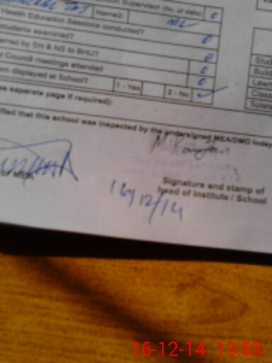 | Certified that this School was Inspected by the Undersigned MEA/DMO Today and the Information Stated Above is as Per Record. | |||||