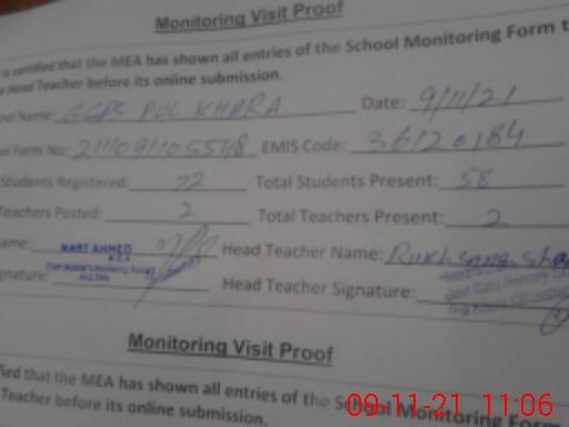 | EMIS Code: 36120184 | Name of School: GGPS PUL KHARA SHUJABAD | |||