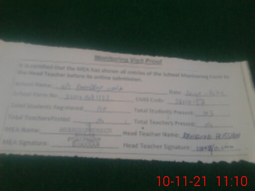 | Certified that this School was Inspected by the Undersigned MEA/DMO Today and the Information Stated Above is as Per Record. | |||||