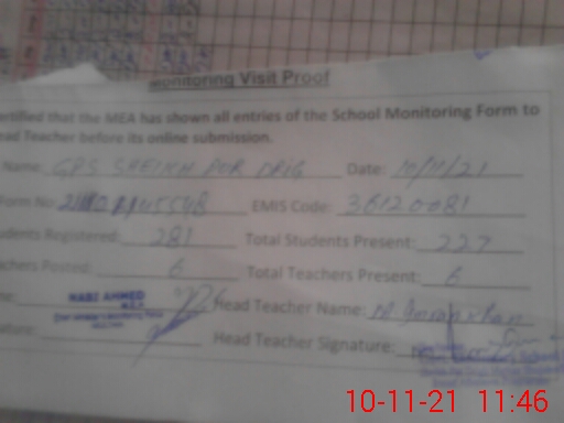 | EMIS Code: 36120081 | Name of School: GPS SHEIKH PUR DRIG P/O GARDEZPUR | |||