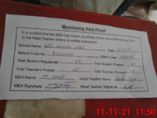 | EMIS Code: 31150149 | Name of School: GPS MUNSHI OTTAR | |||
