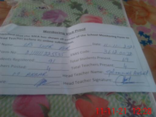 | Name: Mu**** Ar**** Designation: (School Headmaster's/Headmistress's) HEADMASTER Phone/Cell Number: 03**** |