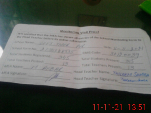 | Name: Ta**** Su**** Designation: (School Headmaster's/Headmistress's) Head Misstress Phone/Cell Number: 03**** |