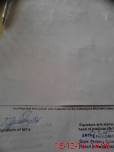 | Certified that this School was Inspected by the Undersigned MEA/DMO Today and the Information Stated Above is as Per Record. | |||||