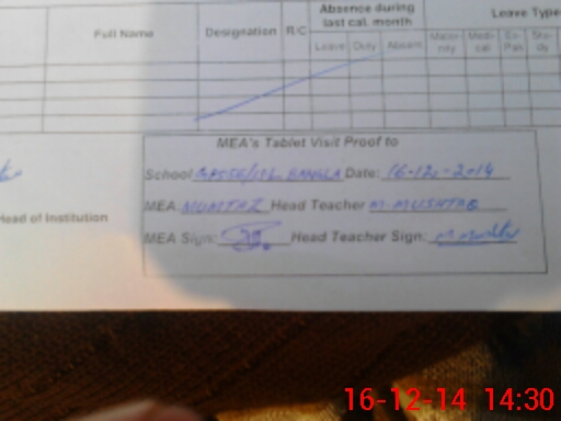 | Attendance Register | Head Teacher | MEA with School | Visit Proof |