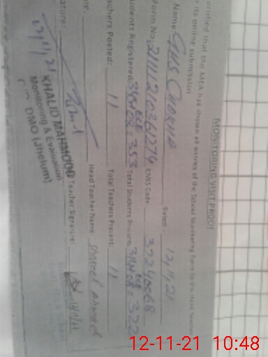 | EMIS Code: 37240068 | Name of School: GHS CHAKOHA | |||