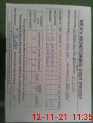 | Monitoring Date: 12-11-2021 | Start Time: 12-11-2021 10:44 AM | End Time: 12-11-2021 11:37 AM | Name of MEA: M.Ta**** Iq**** (S**** | |