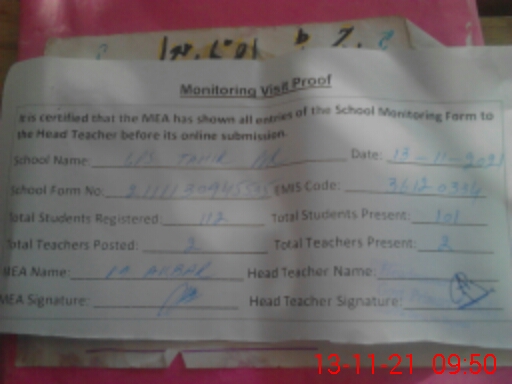 | EMIS Code: 36120334 | Name of School: GPS TAHIR PUR SHUJABAD | |||