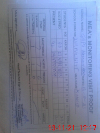 | Monitoring Date: 13-11-2021 | Start Time: 13-11-2021 11:13 AM | End Time: 13-11-2021 12:19 PM | Name of MEA: Kh**** Me**** | |